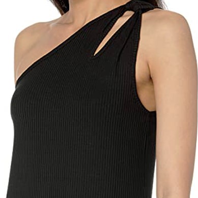 - A subtle twist cutout adds a touch of romance to this minimal one-shoulder flowy maxi dress silhouette, cut from a lightweight Tencel blend ribbed knit. Belt the waist for added shape and a pop of color